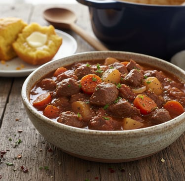 I’ve cooked stew in stainless steel, nonstick, and even a slow cooker, but nothing beats cast iron — especially enameled cast iron. My Lodge Dutch Oven is the perfect size for a family‑style stew without making enough to feed the entire county.